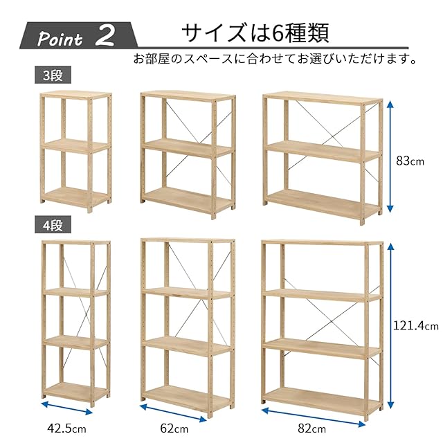 材質:フレーム・棚板/天然木(無塗装)