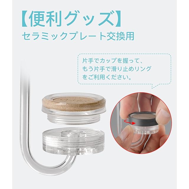 【ご使用注意】エアーポンプの吐出量が大きすぎる場合は、使用前に流量制御弁を取り付けてください。吐出量を小さくて調整してご使用ください。吐出量が大きめに行うとプレートの破損の恐れがあります。 そうすれば、元の状態(小さい気泡)に戻すことができないです。プレートが破損した場合、当店では交換用プレートをご用意しております。