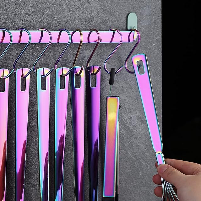 Evanda キッチンツールフック レーンボー タオル収納 壁掛け式 吊り下げ 防水 移動できるフック14個付き ステンレス鋼 チタンメッキ 調理器具 省スペース お玉掛け ラック お風呂 シャワーラック 台所ラック ステンレススチール バスルーム&キッチン収納 | HiKaRiストア