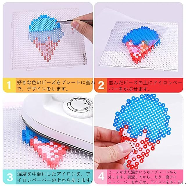 【小さなお子様でも使用可能】プレート本体はクリアで使いやすく、お手本を下敷きにしてビーズを置いていくことが可能です。お子様でも見本通りに作れるので、ぜひ面白いビーズ作品作りを楽しましょう!