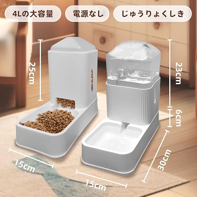 【重力式自動供給】このペットフィーダーは自然な重力供給システムを使用。電力は不要で、いつでもどこでも使えます。