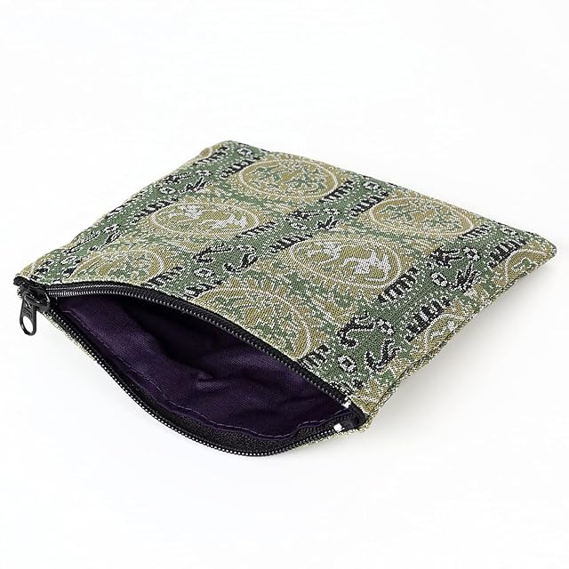 正倉院 男性用 数珠袋 念珠入れ チャック付 ポーチ ケース 13×13cm 外箱付 日本製/緑 グリーン