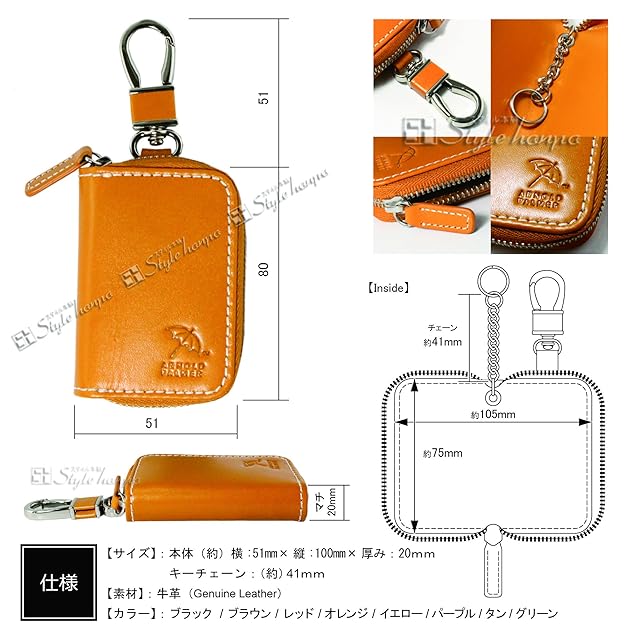 【素材】牛革【サイズ】 パスケース:横51mm×縦80mm×厚み20mm ナスカン:50mm