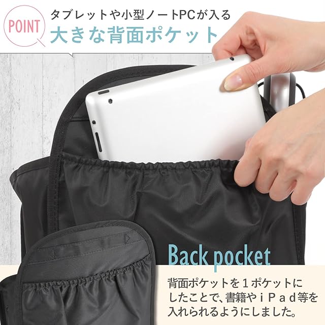 ✅お客様の声によりポケットを変更 背面ポケットを全面ポケットに変更しiPad、書籍、小型ノートパソコン等を入れてお使い頂けるようになりました。
