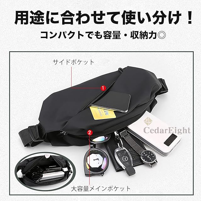 [シダーエイト] ウエストポーチ メンズ 防水 ショルダーバッグ カジュアル スポーツ バッグ 斜めがけ ボディバッグ