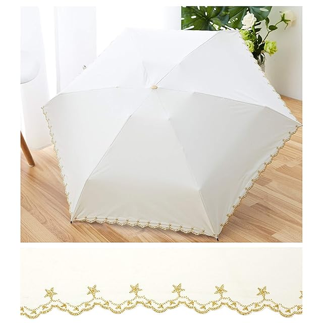 おりたたみ傘 レディース 日傘 uvカット 100 遮光 折りたたみ 自動開閉 軽量 かわいい 日傘兼用雨傘 210T高密度 撥水加工 グラスファイバー 紫外線カット プレゼント ギフト (自動開閉タイプ・星柄刺繍・ホワイト) | HiKaRiストア