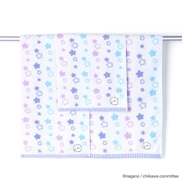 タオル全体に散りばめられた星の中に、表情がキュートなちいかわのアップリケが付いています。