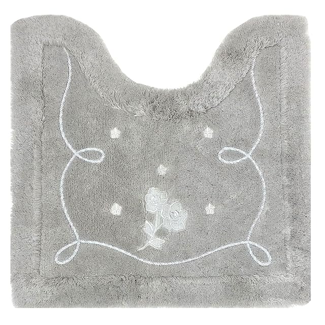 センコー レイシ—ローズ トイレマット 約58×60cm グレー ラインストーン コード刺繍 エレガント 39543 | HiKaRiストア