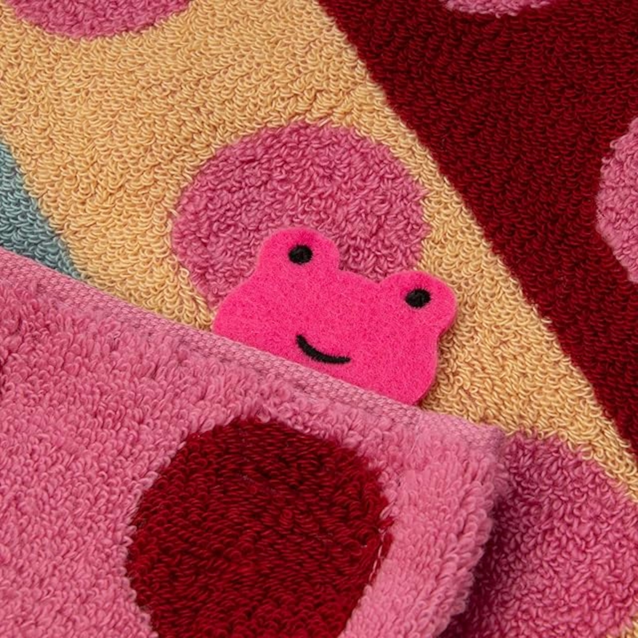 nishikawa 【 西川 】 今治 タオル ハンドタオル (ウォッシュタオル) 綿100% マタノアツコ カラフルキャンディー カエル ドット 水玉 ループ付き ふわふわ やわらか 日本製 ピンク TT31803610P