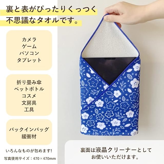 【特長】裏と表がぴったりくっつく不思議なタオル(包むだけでポーチになる)