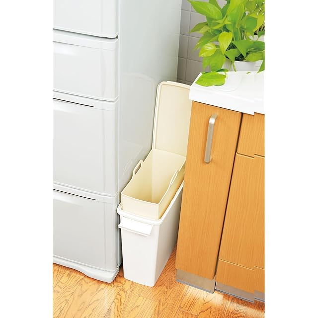 新輝合成トンボ ゴミ箱 防臭 抗菌 パッキン ロック 中バケツ付 14リットル ベージュ 幅17×奥行34×高さ38cm 蓋付き 日本製