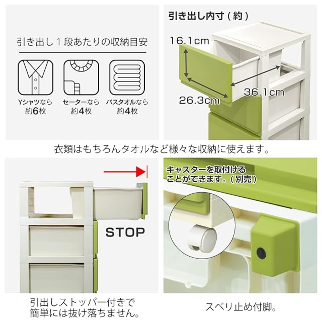 color:グリーン size:奥行34cm x 幅41.5cm x 高さ86.1cm (引き出し数 4) style:1)スリム[幅約34cm]: