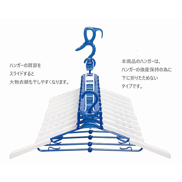 ニッコー 洗濯物ハンガー ブルー 幅41X奥行5X高さ44cm ハミング 10連スライド式ハンガー F-13