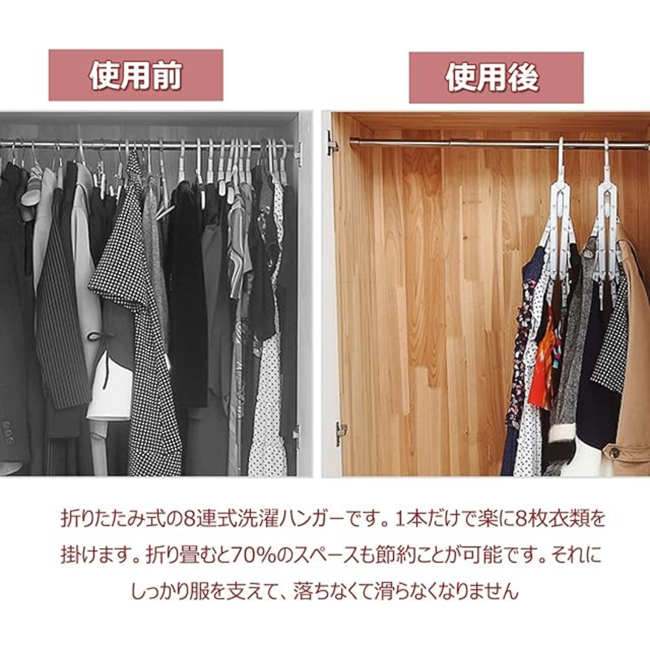 洗濯ハンガー 折りたたみ式 8連ハンガー ワンタッチハンガー フック360度回転 多機能 滑り止め 物干しハンガー 携帯便利 コンパクト 省スペース 耐荷重 室内屋外兼用 洗濯物干し 旅行 新生活 引っ越し用 (8連ハンガー)