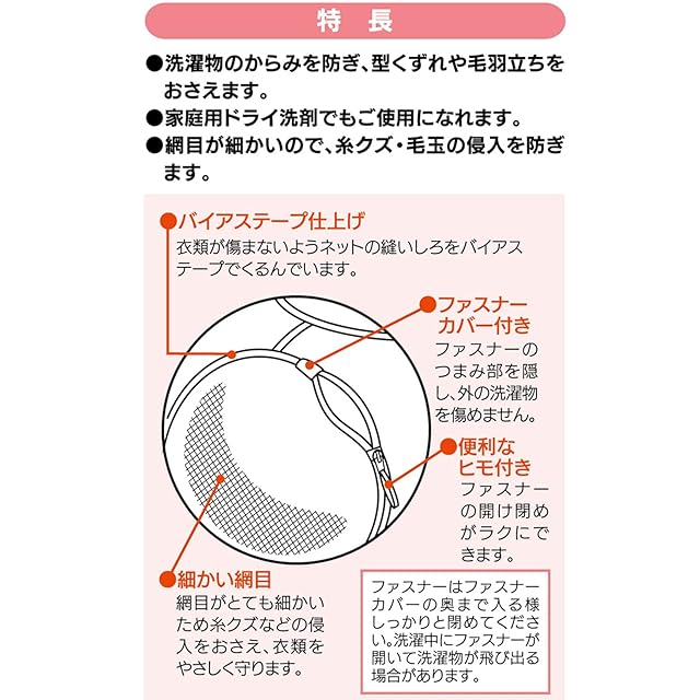 洗濯物のからみを防ぎ、型くずれや毛羽立ちをおさえる洗濯ネットです。