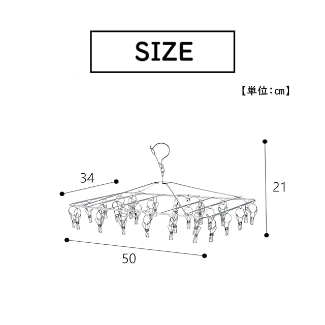 洗濯ばさみが32個付いていて、くつ下やハンカチなどの小物干しにも便利!