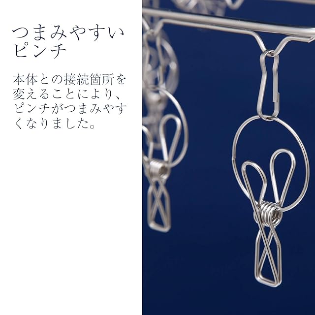 丈夫でさびにくいオールステンレスの折りたたみピンチハンガー