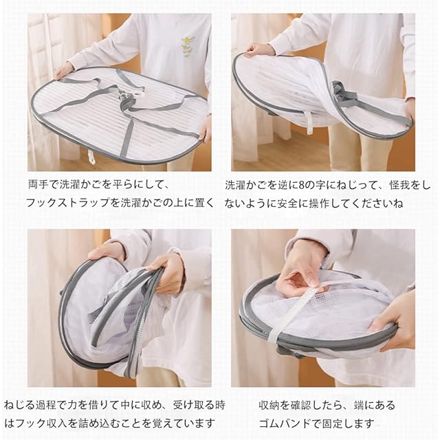 【防風・折りたたみ・通気性・収納袋付き】 この干しネットは防風機能を備えており、トップに設計して防風フックがあり、風が大きい天気でも安心に洗濯物を干すことができます。しかもプライバシー保護機能を備えて、ブラジャー、下着などでも安心に干します。収納袋があるので、物干しネットは折りたたんだ後、とても持ち運びやすくて、旅行、出張の時にも便利に使用可能です。更にメッシュ構造で抜群な通気性があり、洗濯物が速乾します。