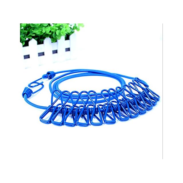 洗濯バサミ付き洗濯ロープなので、しっかりで靴下、下着、小さい服などを挟んで、便宜を干します。また、風が吹いてもズレたり落ちたりしません!