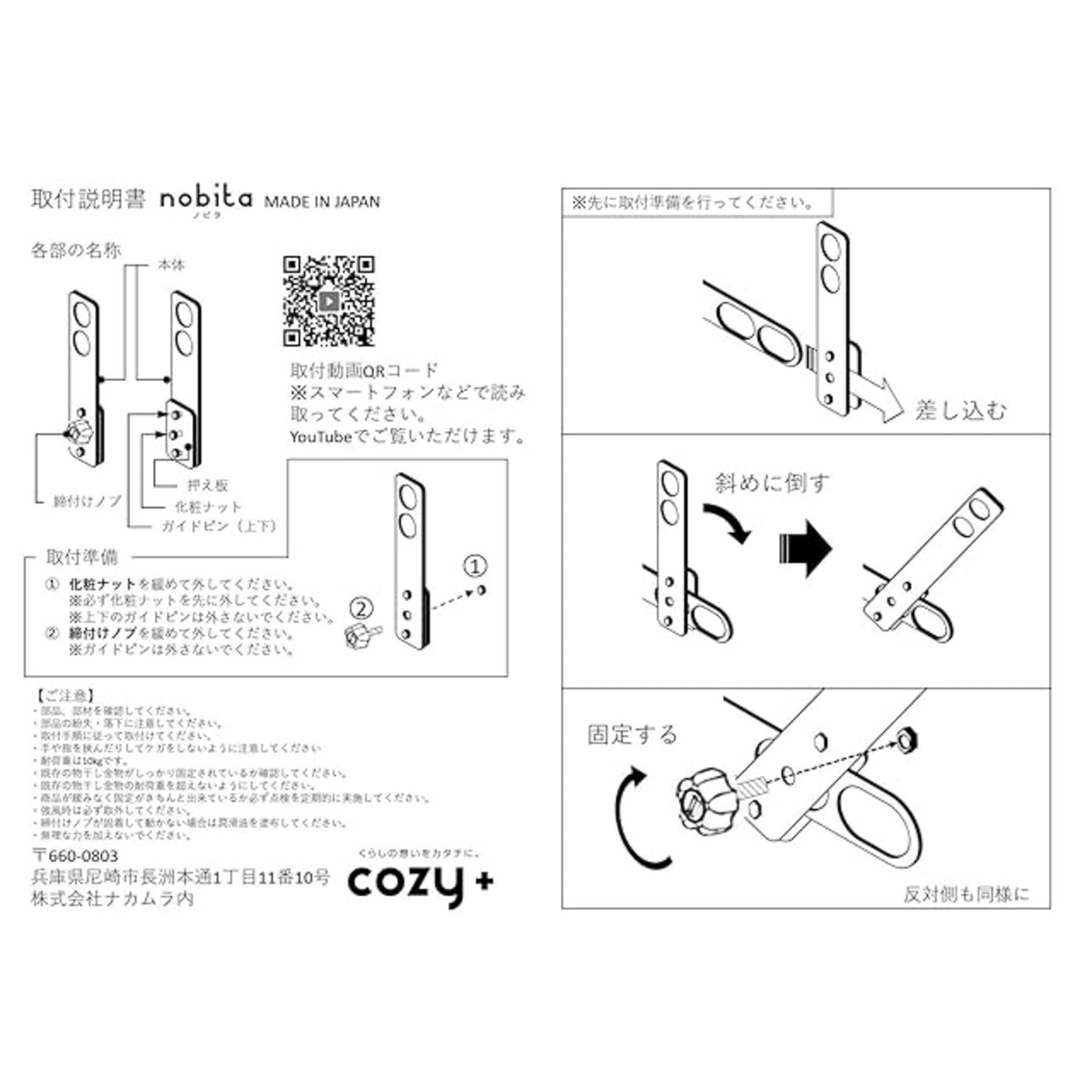 物干しが高くなり洗濯物が良く乾く金物 nobita ロングタイプ (白キャップ) ノビタ ベランダ 高さアップ 丈夫 日本製