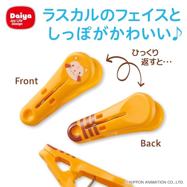 ダイヤ (Daiya) 洗濯バサミ ラスカル ランドリーピンチ 横3.6cm×縦5.8cm×厚2cm メモやお菓子のクリップとしても使える メモ クリップ 顔としっぽが裏表に印刷 可愛い 057964 | HiKaRiストア
