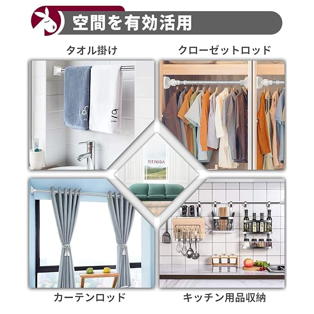 【空間を有効活用】突っ張り棒は自由に長さが調節でき、違う場所に合わせて取り付けられます。洗濯物を掛けられる場所がない狭いマンションなどの室内に設置すれば、梅雨時期でも、浴室乾燥機や換気扇で乾燥させることができます。木製・ガラス・大理石・タイル・壁紙・モルタルなどの様々な壁面に使用し、収納力拔群で、場所を取らないです。使用しない時に取り外すことも可能です。