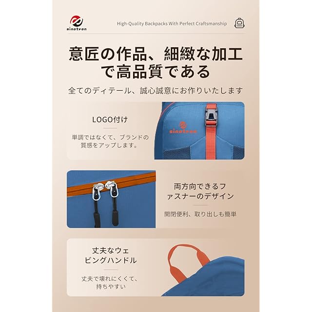 【優れた耐引裂性】厚めの撥水ナイロン生地を使用、更に二重底部設計を採用し、 外表は傷がつきにくく、丈夫で質感も耐久性も兼ね備えています。水や汚れがつきにくくて、 また、どちらの側からでも簡単に操作できるように、バックパックには、防水性と防塵性を備 えた頑丈なSBS金属製ファスナーが2つあり、どちらの側からでも簡単に操作できます。