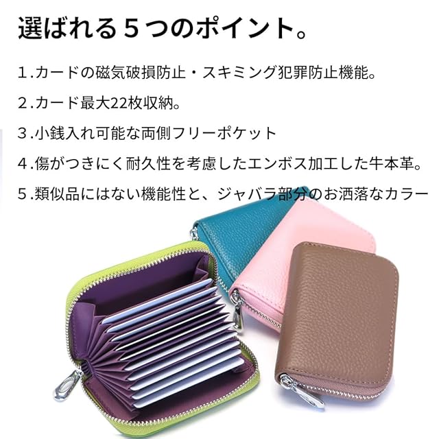【大容量の収納】12ポケットのうちサイドの2つはワイドポケット。スタッフが試したところ、通常のカード22枚までファスナーが閉まりました。使用頻度の少ないカードはこのカードケースに収納し、できるだけお財布を薄くすることをおススメします。【サイズ詳細】長さ11.0cm×幅7.5cm×厚さ2.5cm 83グラム