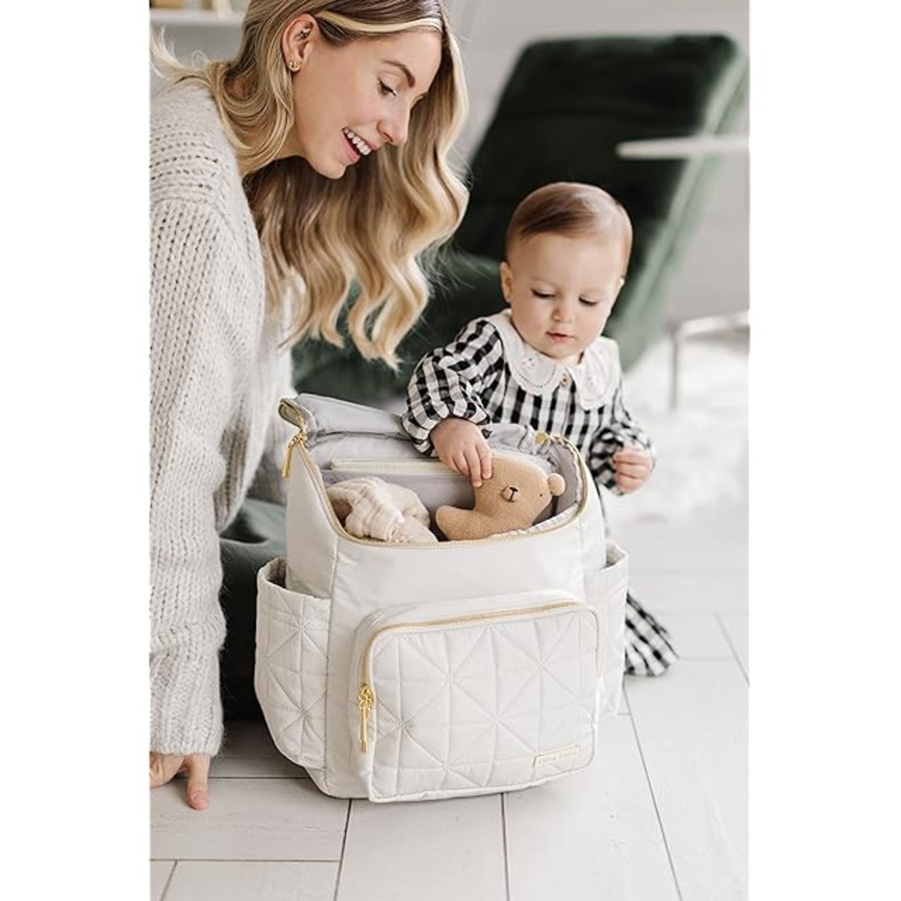 リュック、ショルダー、クロスボディと3つの顔をもつリュクスなマザーズ バッグ ※おむつ替えシートセット 取り外し可能なバイカラーのショルダーベルトがアクセントに。シンプルで 上品なデザイン&カラー、同シリーズで子ども用リュックも展開中。親子で リンクコーデが楽しめるので、おしゃれなママにおすすめです。