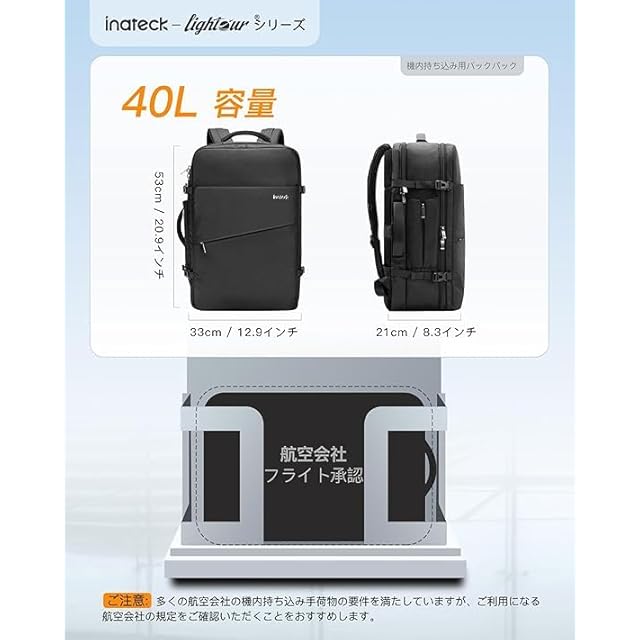 [Inateck] 40L 旅行 リュック 大容量 3way バックパック 機内持ち込み 収納力 出張 軽い 盗難防止 撥水加工 15.6-17インチPC バッグ 男女兼用 通勤 通学 人気 耐衝撃 おしゃれ ブラック | HiKaRiストア