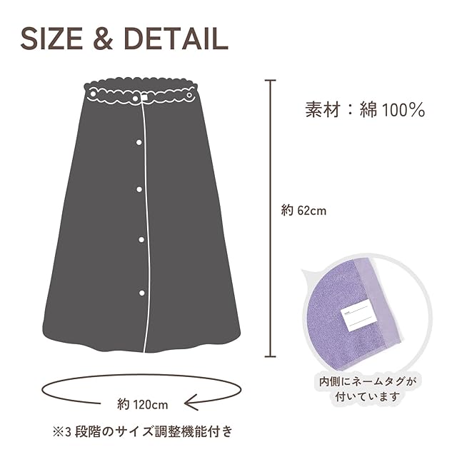 【吸水速乾・簡単お洗濯】 表は通気性の良いガーゼ生地、肌に触れる裏面は吸水性の良いパイル生地を採用しました。 タオル生地で出来ているのでご自宅の洗濯機でジャブジャブ洗えます。 片面がガーゼ生地なのでとても乾きやすく梅雨の時期の部屋干しでも安心。 綿100%の生地はお肌に優しい質感で、体に巻くと水分をしっかり吸水してくれます。