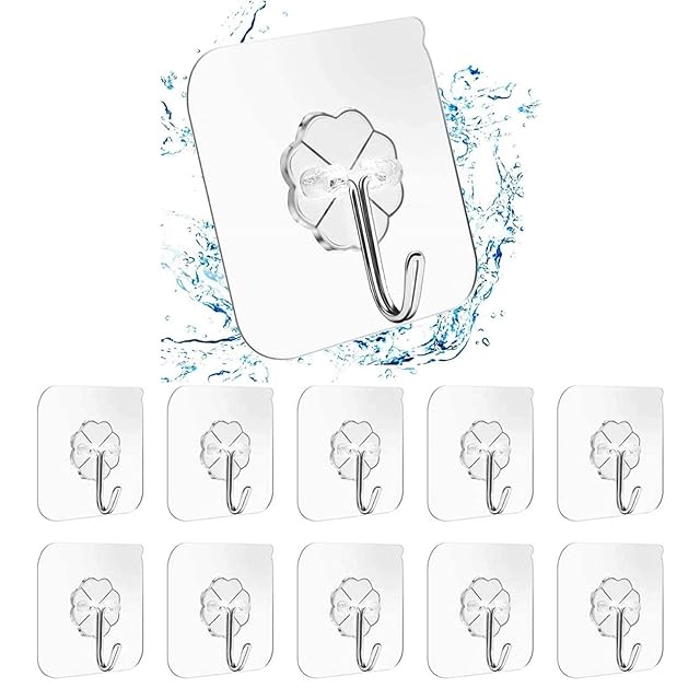 YFFSFDC 壁掛けフック 粘着 強力 壁穴あけないフック 10枚セット 工事不要 透明 強力フック 傷つけない 貼り付け跡なし 穴開けない 防水 防湿 キッチン トイレ 錆びない | HiKaRiストア