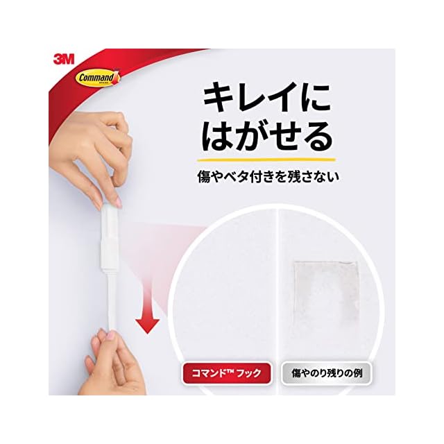 【壁をキズつけず、キレイにはがせる!】不要になればコマンド タブを取りつけ面にそってゆっくり伸ばすだけ!跡を残さずキレイにはがせるので安心してご使用いただけます。お部屋の飾りつけやデコレーションも、好みや気分に合わせて気軽に楽しめます。はがした壁掛けフックは、替えのタブを貼るだけで再利用できます!