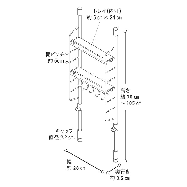 【外寸サイズ】幅28×高70~105×奥行8.5cm 【耐荷重】5kg【本体重量】1.3kg