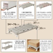無段階伸縮式で、幅約54~76cmまで、空間に合わせた設置ができます。