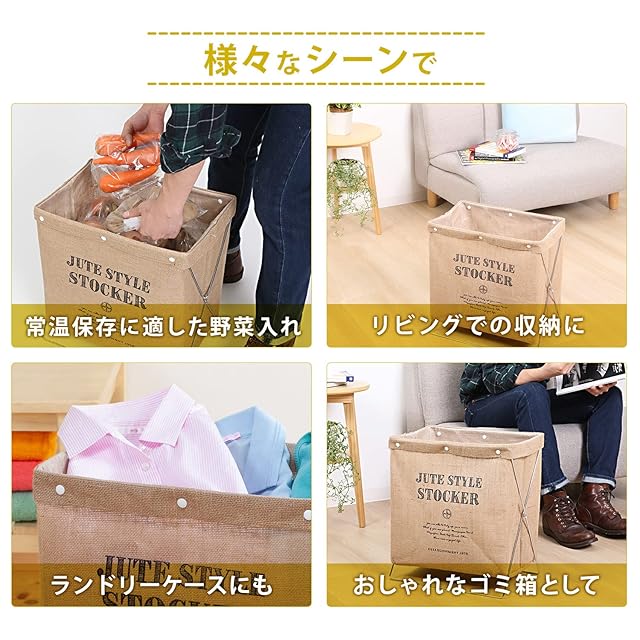 【様々な用途で】:新聞、雑誌、ブランケット入れなどのちょい置き、ごみ箱など様々な用途でご使用いただけます。