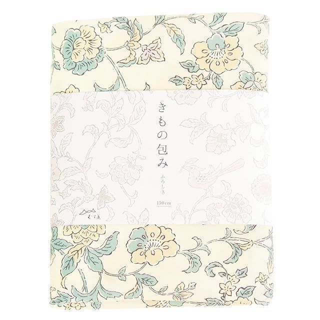 むす美 ふろしき 150 きもの包み 花鳥更紗 キナリ 150cm 綿