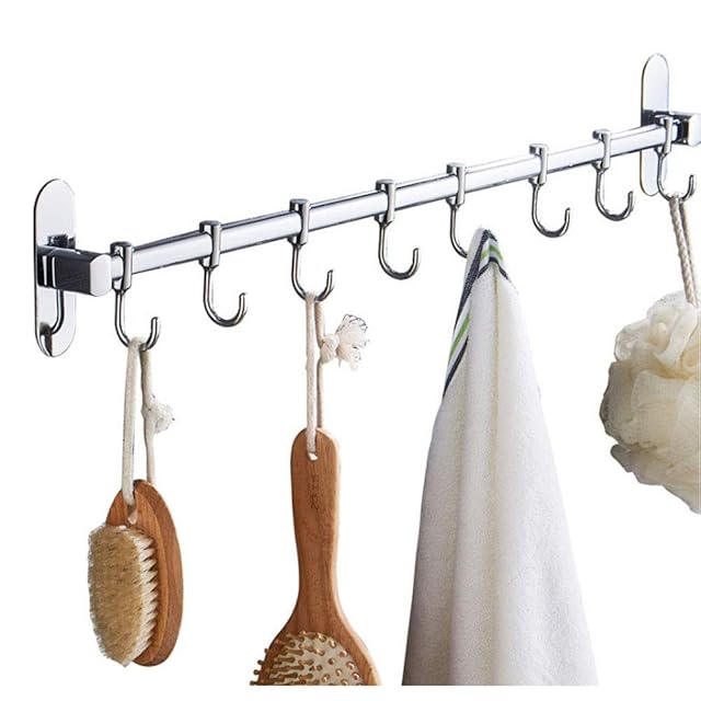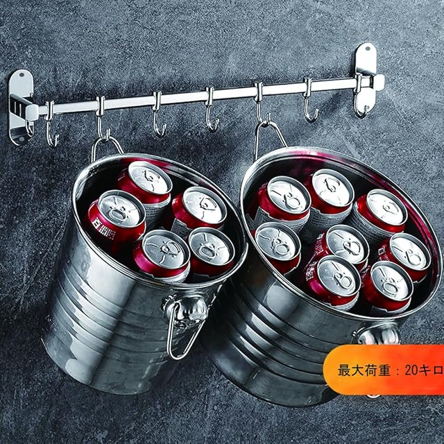 Tengfey キッチンツールフック 壁掛け式 強力粘着固定 或はビス固定 防水 40.5cm/50cm/59.5cm 6個/7個/8個フック付き ステンレス 調理器具 収納 お風呂 シャワーラック タオルハンガー 台所ラック | HiKaRiストア