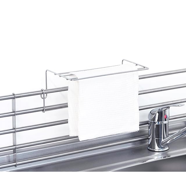 同シリーズの水切り棚やシンク奥スタンドに設置できる「クロスハンガー」です。