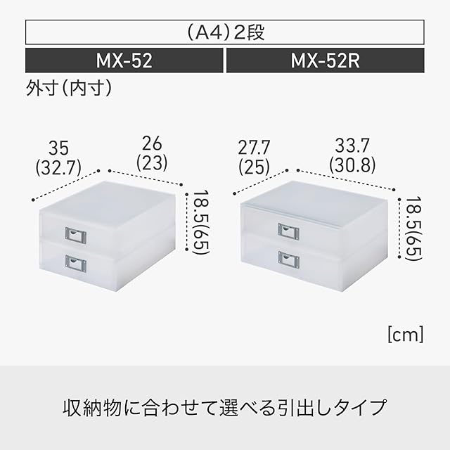 ライクイット (like-it) 収納ケース A4 引き出し 書類ケース 縦型 2段 幅26×奥35×高18.5cm ホワイト (半透明) 日本製 MX-52 シリーズ累計販売数1,000万個突破 ファイルユニット 書類収納ボックス 文具収納 卓上収納 工具収納 梱包資材 | HiKaRiストア