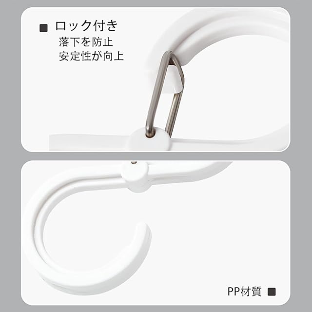 【落下防止】ロックをかけておけばものを取る時にフックが落ちたり、風で吹き飛ばされたりすることはありませんので、安定性抜群です。
