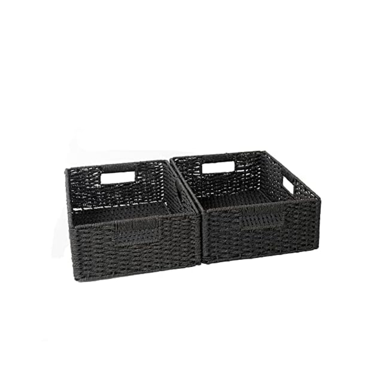収納バスケット 折り畳み 手編み 2個入 幅38×奥行26×高さ12cm ペーパーかご 持ち手付き ボックス 籠 おもちゃ 小物収納 業務用 幼稚園 卓上 室内 屋外 小物ケース