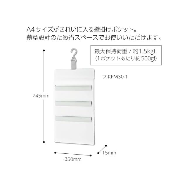 【最大保持荷重】 1.5kgf(1ポケットに付き500gf) 【対応サイズ】 A4