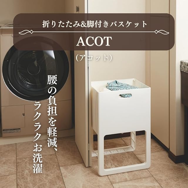 伊勢藤(ISETO) ランドリーバスケット 折りたたみ&脚付きバスケット ACOT グリーン 幅40×奥行4.0~30.0×高さ61.0cm 日本製 折りたたみ 脚付き 腰の負担軽減 収納 洗濯 服 I-541 | HiKaRiストア