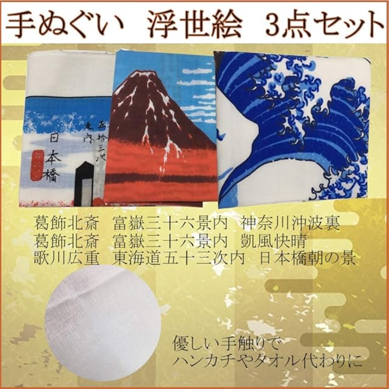 [pkpohs] 手ぬぐい 浮世絵 3点セット 和柄 手拭い 汗拭き お土産 記念品 (浮世絵3点セット)