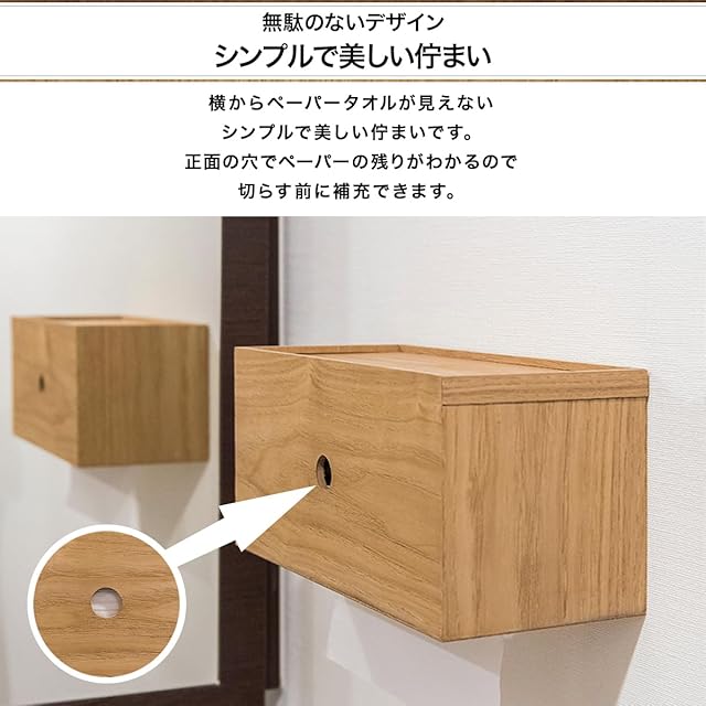 ✅【無駄のないデザイン シンプルで美しい佇まい】 横からペーパータオルが見えない シンプルで美しい佇まいです。正面の穴でペーパーの残りがわかるので切らす前に補充できます。