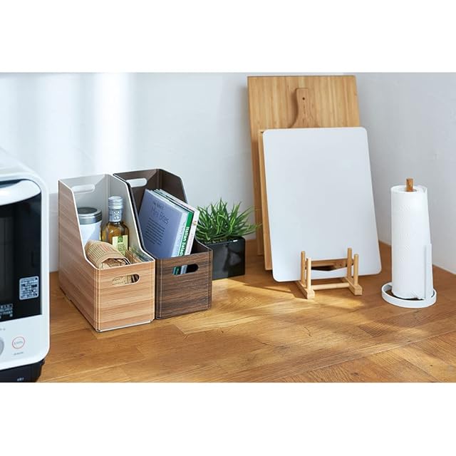 暮らしに馴染む木目調の樹脂製収納ボックス