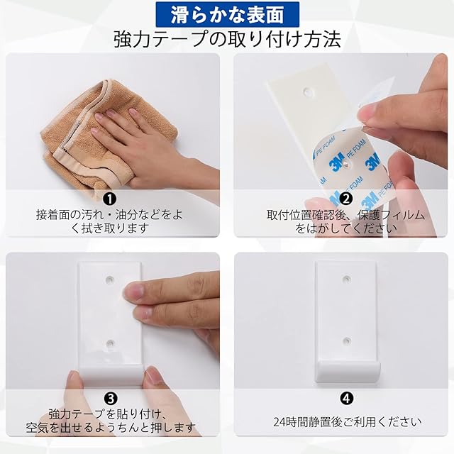 付属:両面テープ、スクリュー。タイル、ガラス、大理石、金属、ツルツルする木製表面でご利用ください。石膏、セメント、壁紙、粉壁など粗い表面で、釘をご使いください。