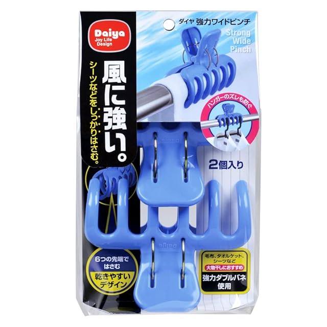 ダイヤ (Daiya) 洗濯バサミ 竿ピンチ 強力ワイドピンチ 2P 横11.9×縦9.3×厚6cm ワイドタイプ ダブルバネ 強力 毛布 タオルケット シーツ ハンガーの横スベリを防ぐ 強風対策 057042