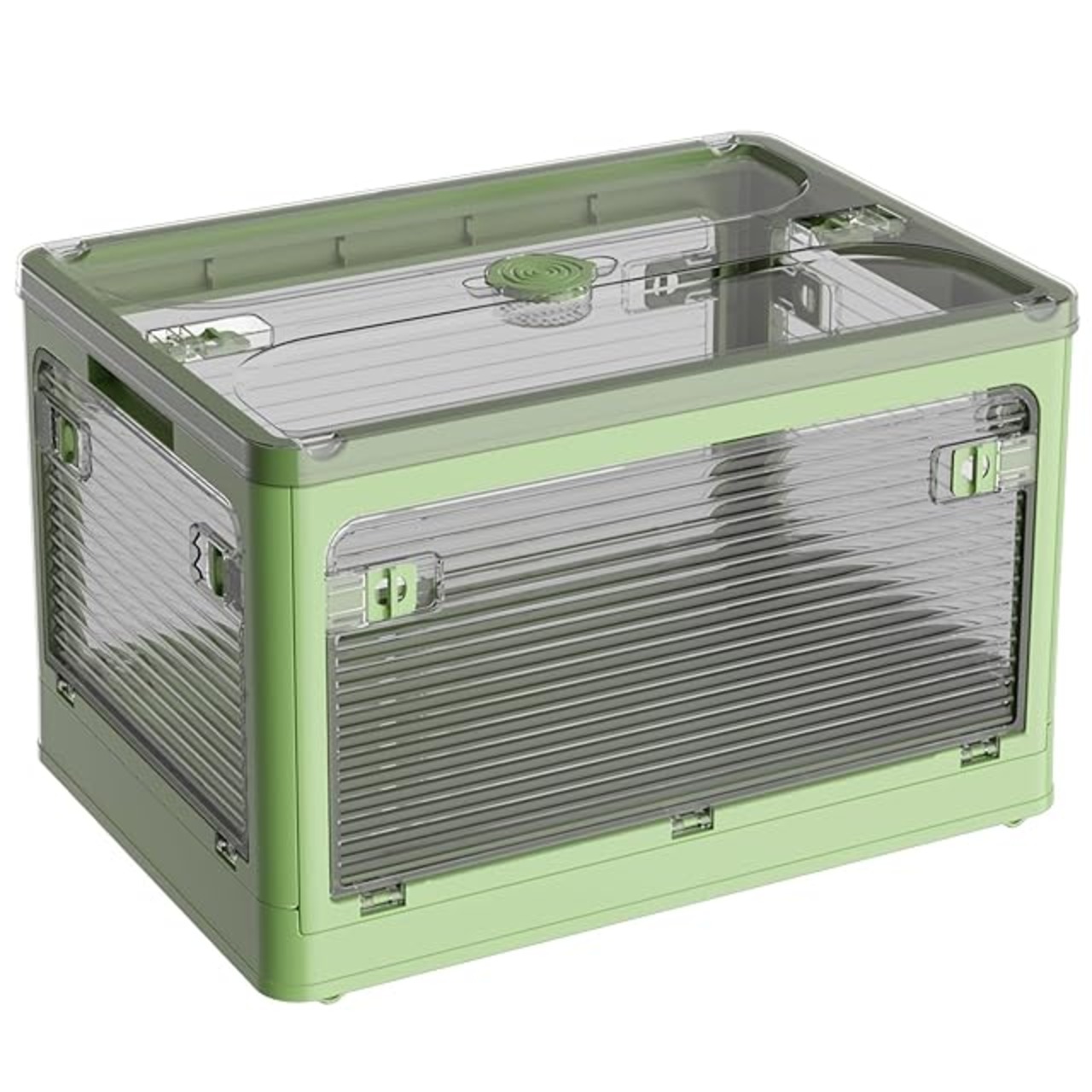 【折り畳み▪上に蓋/側面扉付き】収納箱界の大革新!使わない時に折りたたんで収納できます。スペースを取りません。側面四面も扉付き、収納にとても便利です。上にふた付き、物を入れやすい。蓋をロックできます。物を取るは側面扉から、ボックスを積み重ねる状態にも楽に物を取り出して、伝統的な収納ボックスに比べてもっと便利で、機能性が向上します。